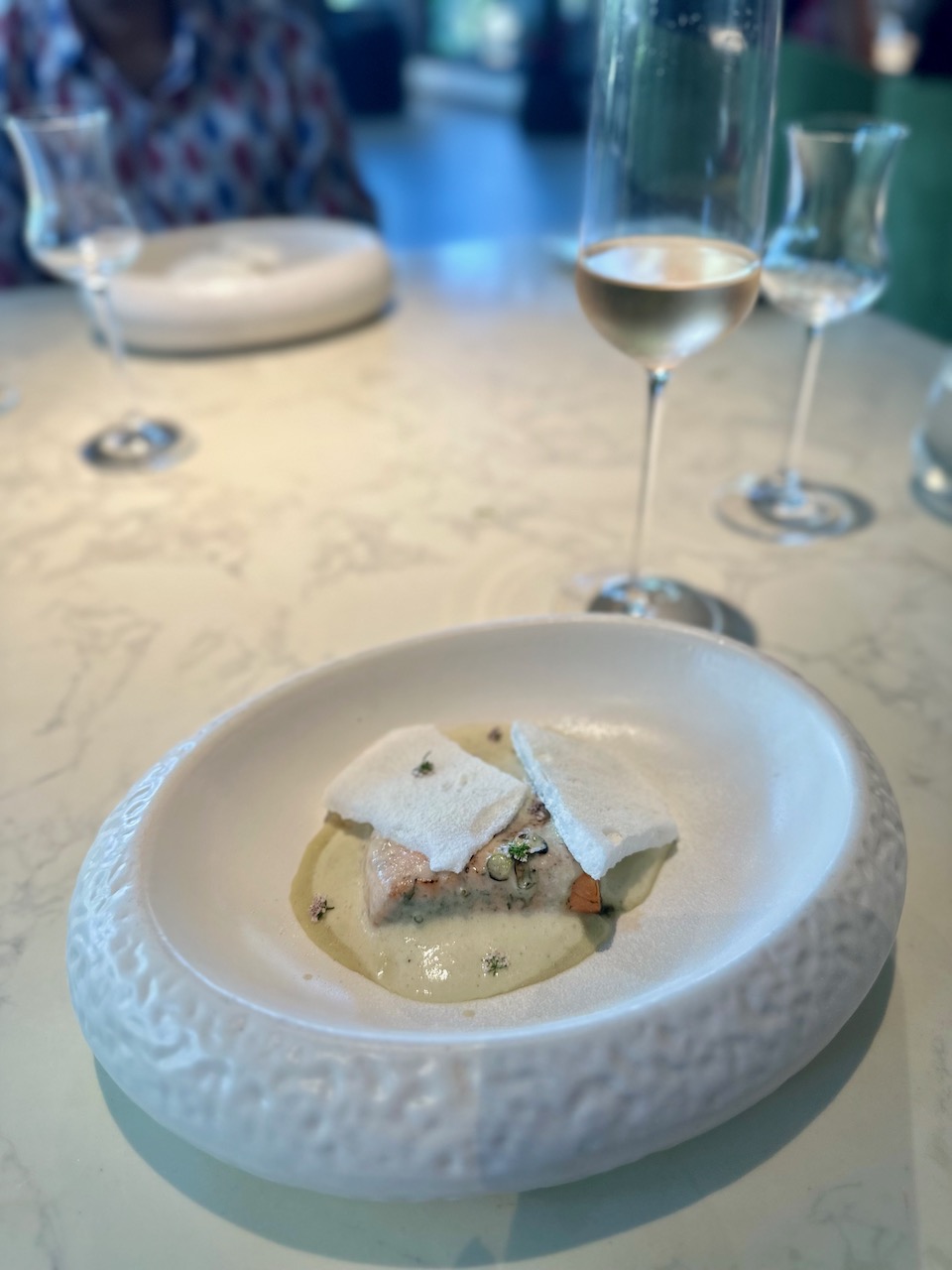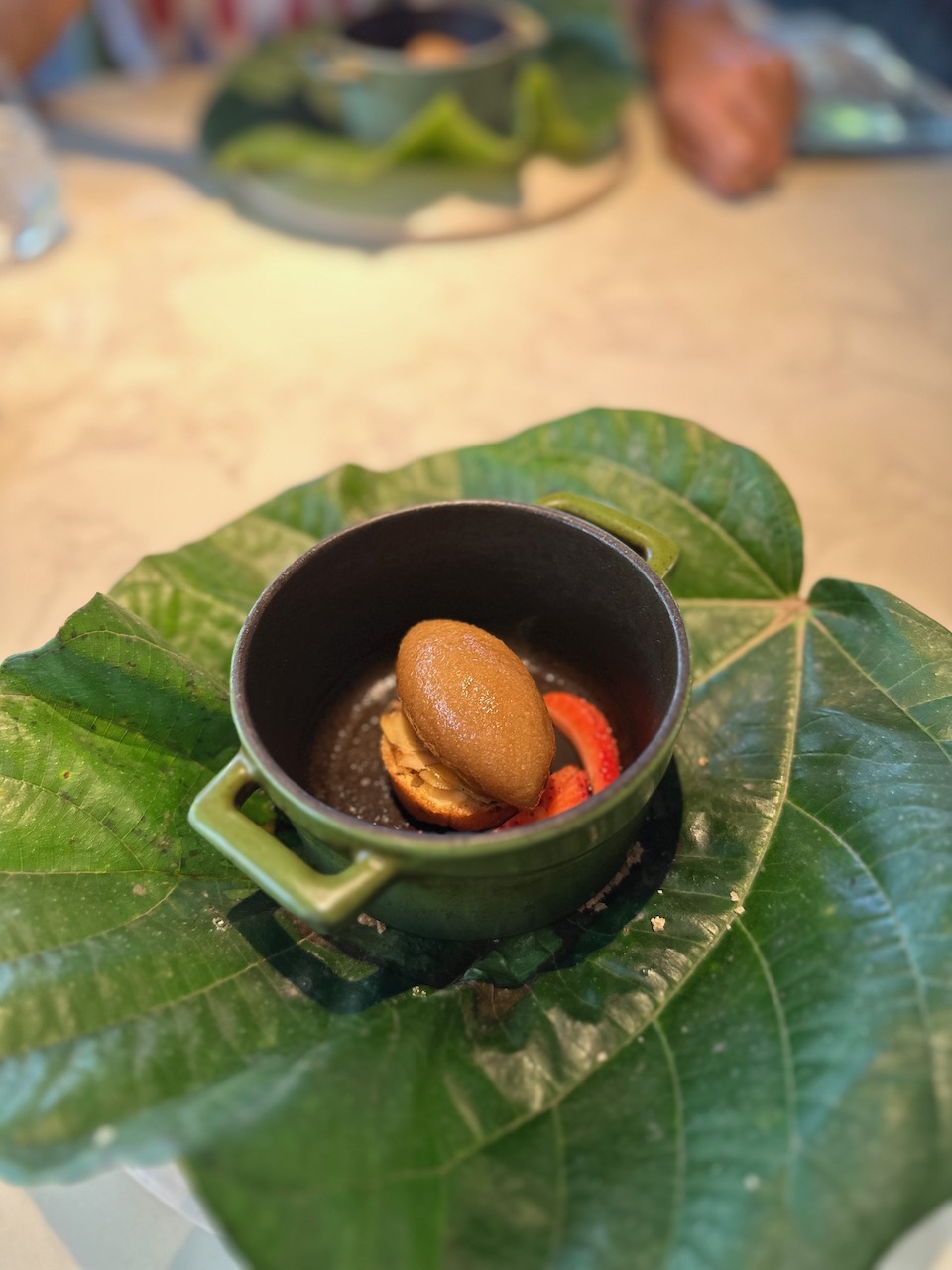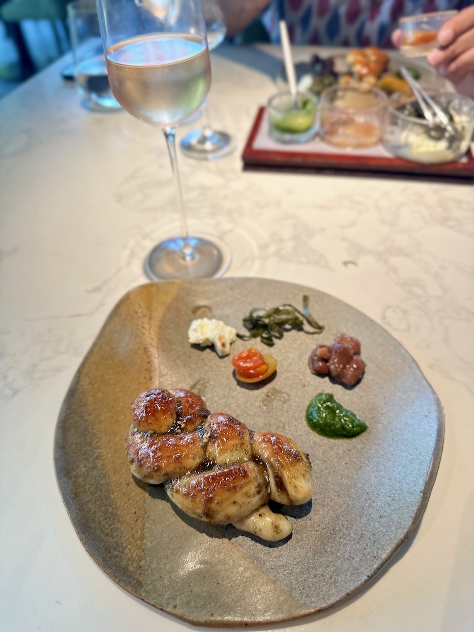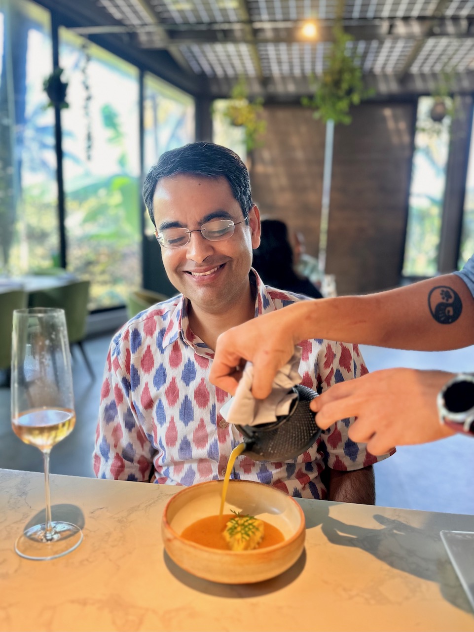 料理を供するたびに、シェフやスタッフが、丁寧に食材などを説明してくれる。それがまた、興味深い。この店もそうだし、ムンバイの名店、Masqueもそうだが、この実験的なキッチンは、かつてスペインのカタルーニャ地方にあった世界的に有名な前衛的レストラン、「エル・ブリ(エル・ブジ)」の流れをも組んでいると思われる。
