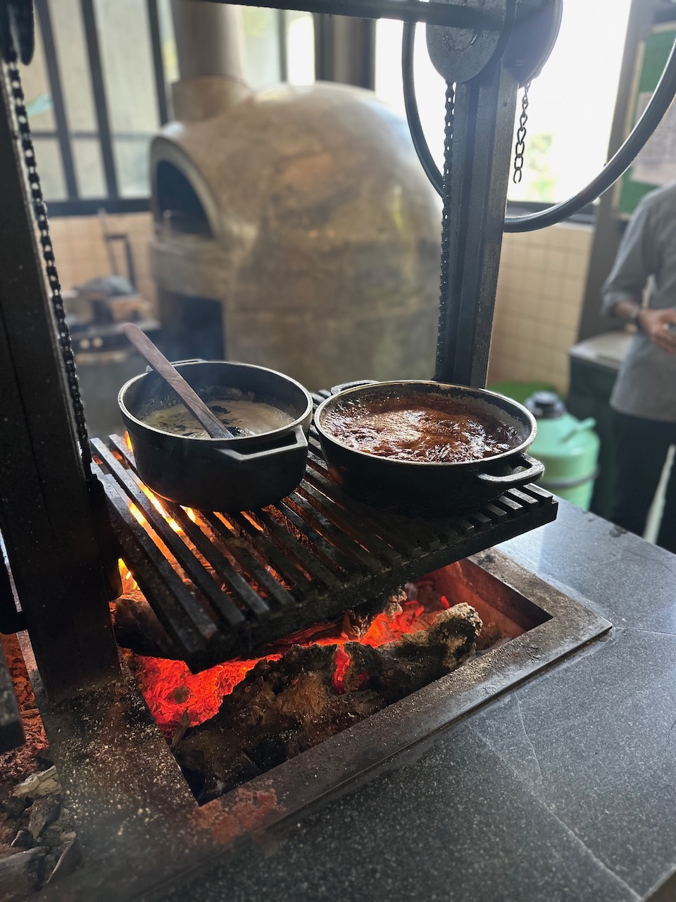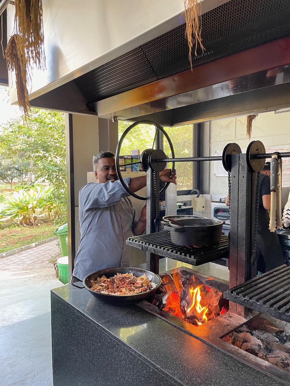 敢えて「原始的な」雰囲気のそのキッチンの、得も言われぬ魅力的な様子! 「まかない飯」のおいしそうなこと! 長時間の蒸し焼き料理にも使うという釜の燃料は、敷地内のマンゴーの木。……尽きない。