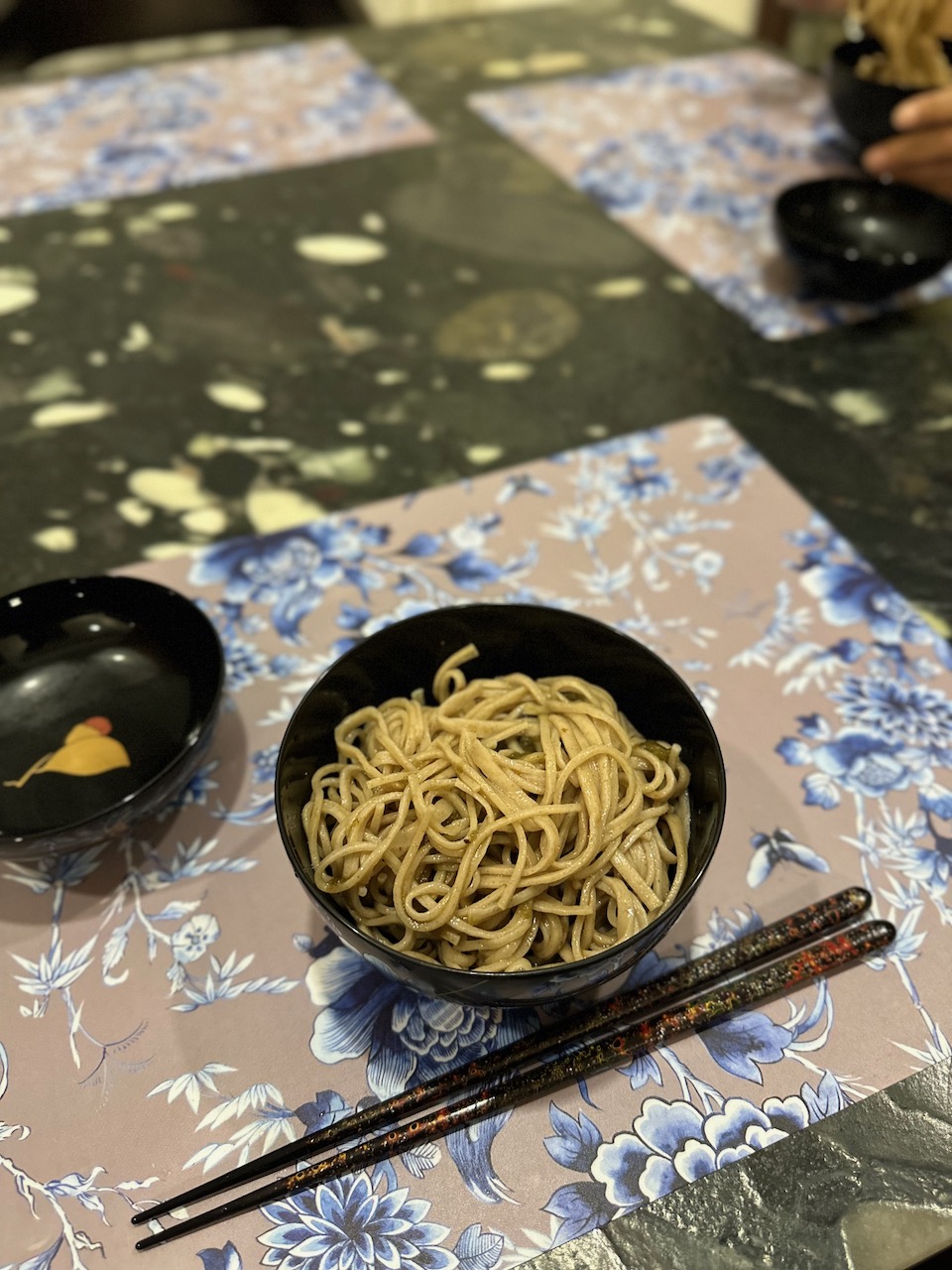 先月、京都からお越しくださった京友禅染匠の竹鼻夫妻からいただいていた蕎麦、最後の一袋を開封。茹でたあと、冷水に晒して締めたあと、とろろ昆布を載せて、だしをかける。おいしく締めくくった2022年。