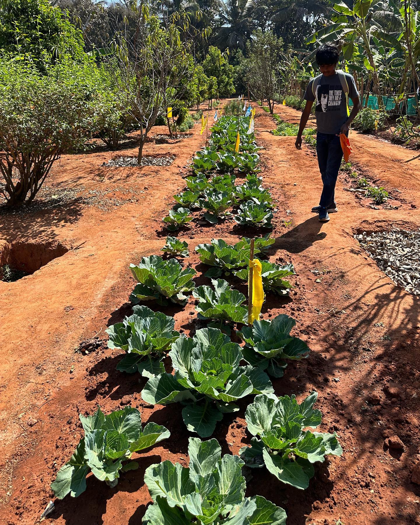 そんな青く乾いた日曜の朝。空港の北、ヤラハンカの新居からは車で約30分ほどの場所にあるオーガニック・ファームの見学に訪れた。英国統治時代の面影を残す、情趣豊かなファームハウスの周辺に、小規模ながらも手入れの行き届いた、アットホームな畑が広がる。農園を営む一家の娘さんが、園内を案内してくれる。