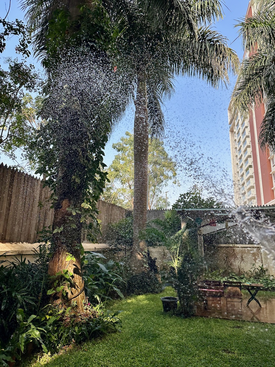 今朝は、2泊3日でゴア旅行に出かけた夫を見送り、わたしは庭の水撒きからはじめる。もう久しく我が家を見守り続けてくれている仏像を清め、緑を洗い、心も洗浄される思いだ。