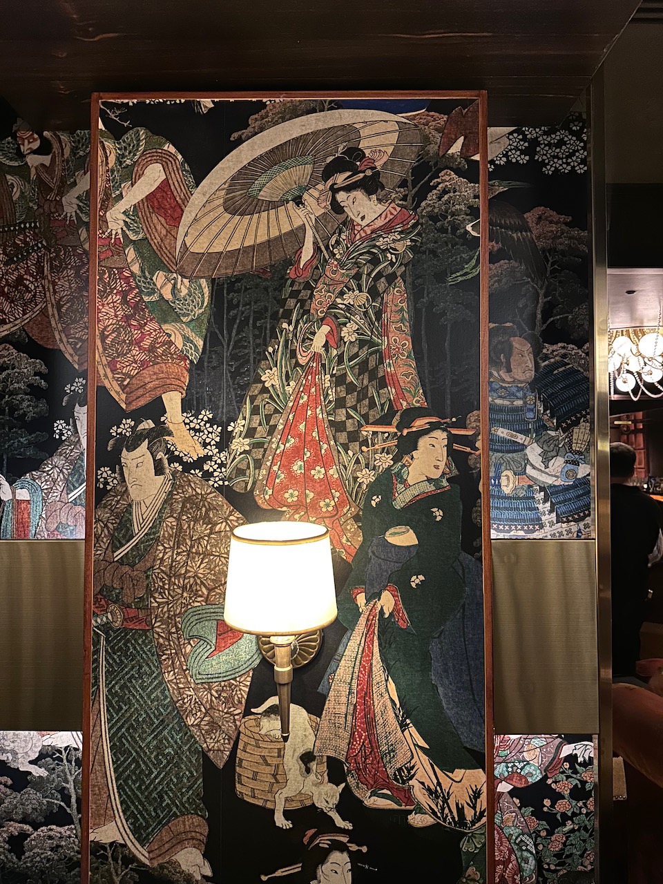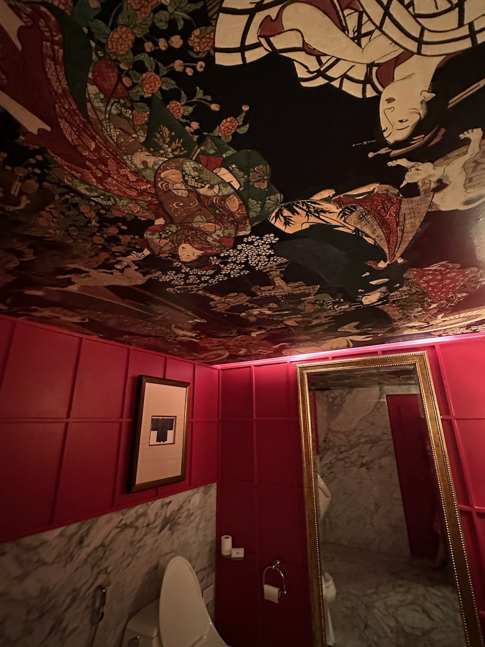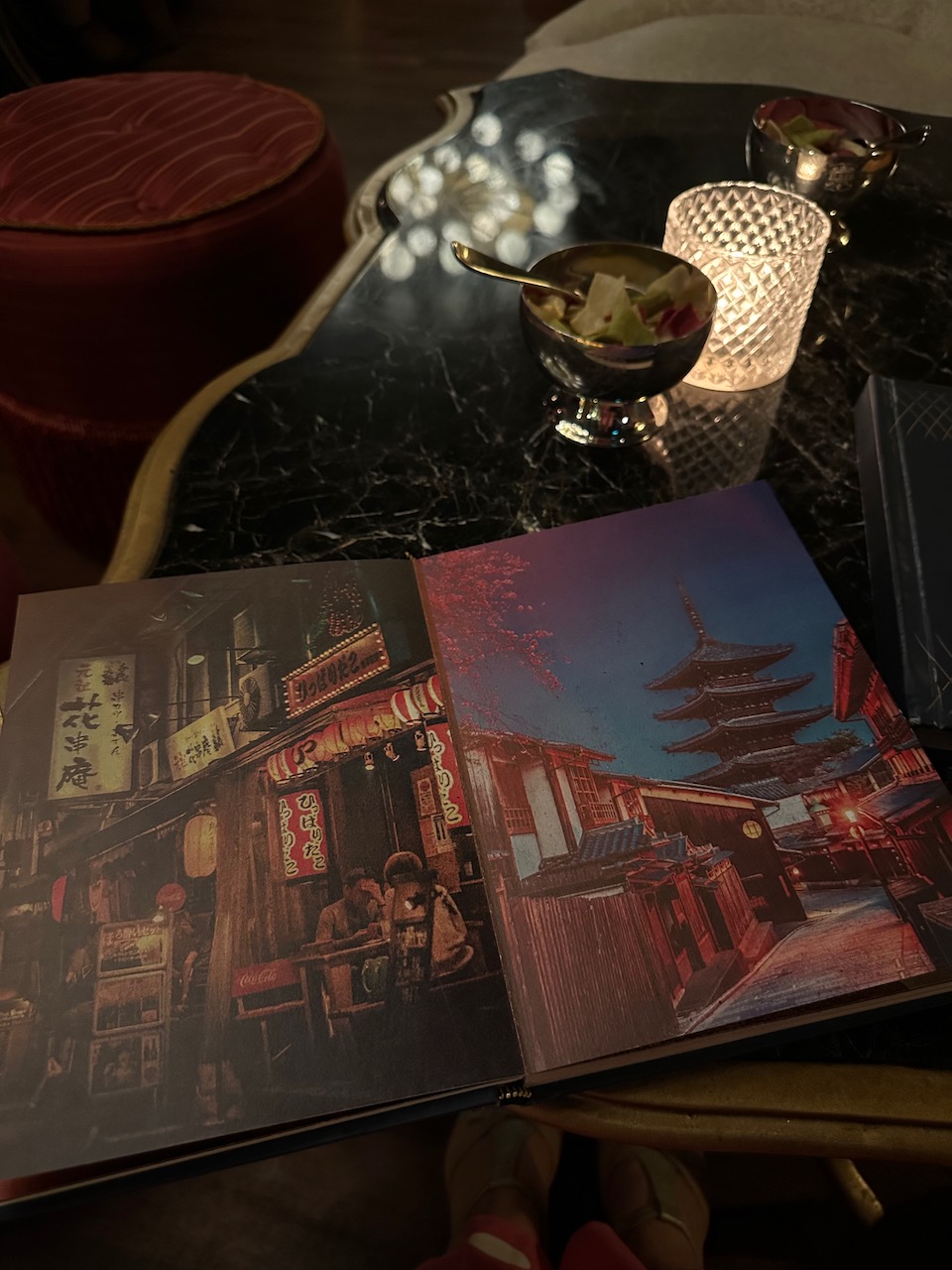 ドアを開けば、そこは妖しきジャパネスクの空間。京都をテーマにしているというこの店は、内装もメニューも独特のオリエンタリズム世界だ。