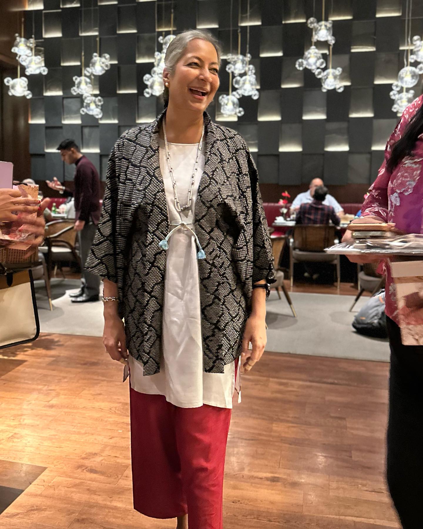 ところで、友人のYashoが着ているのは、バンガロールのブティックで購入したという日本の羽織(はおり)。実は海外で、日本の羽織風をデザインし「キモノ」と称して販売しているケースは少なくない。こういう着こなしも素敵だ。
