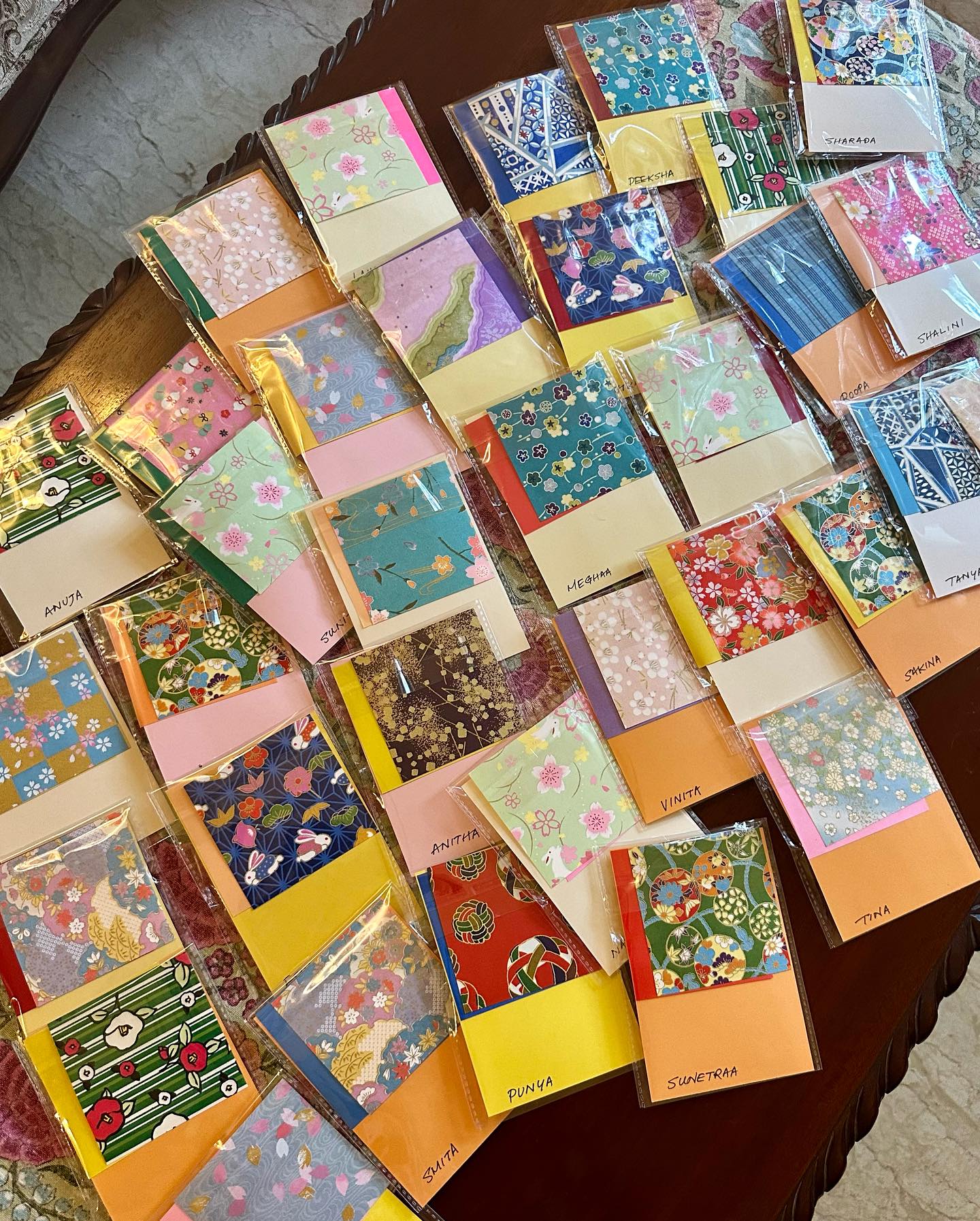 シェフによるクッキングのデモンストレーション、そしてわたしのレクチャー、食事……と豊かなプログラムだった。わたしからは、コンプリメントでギフトを準備。毎度のように、参加者の名前を「いい感じの漢字」の当て字で記し、京友禅柄のかわいらしい千代紙で鶴を折った。千代紙の美しさも、本当に格別。ミューズ・クリエイションの活動でも使ってきた千代紙。このごろは、一時帰国のたびに、上質なものを入手し、ギフトにアレンジして使っている。