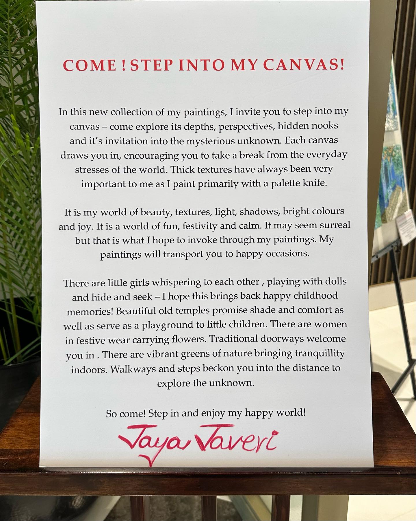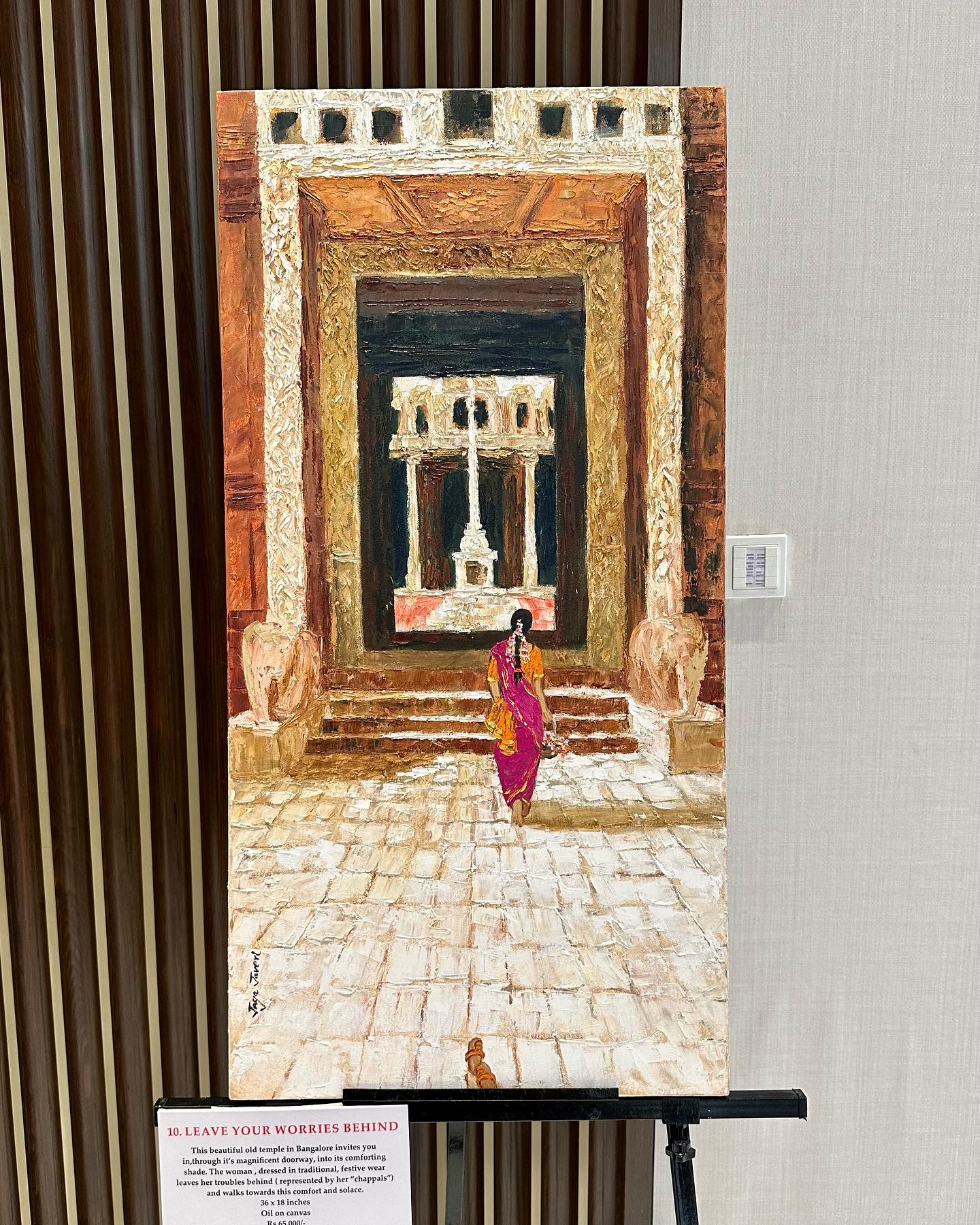 日曜の午後は、アーティストの友人JAYAの個展だった。会場は、数年前、市街北部にオープンしたThe Leela Bhartiya City Bengaluru。隣接するモールには訪れたことがあるが、ホテルは初めてだ。