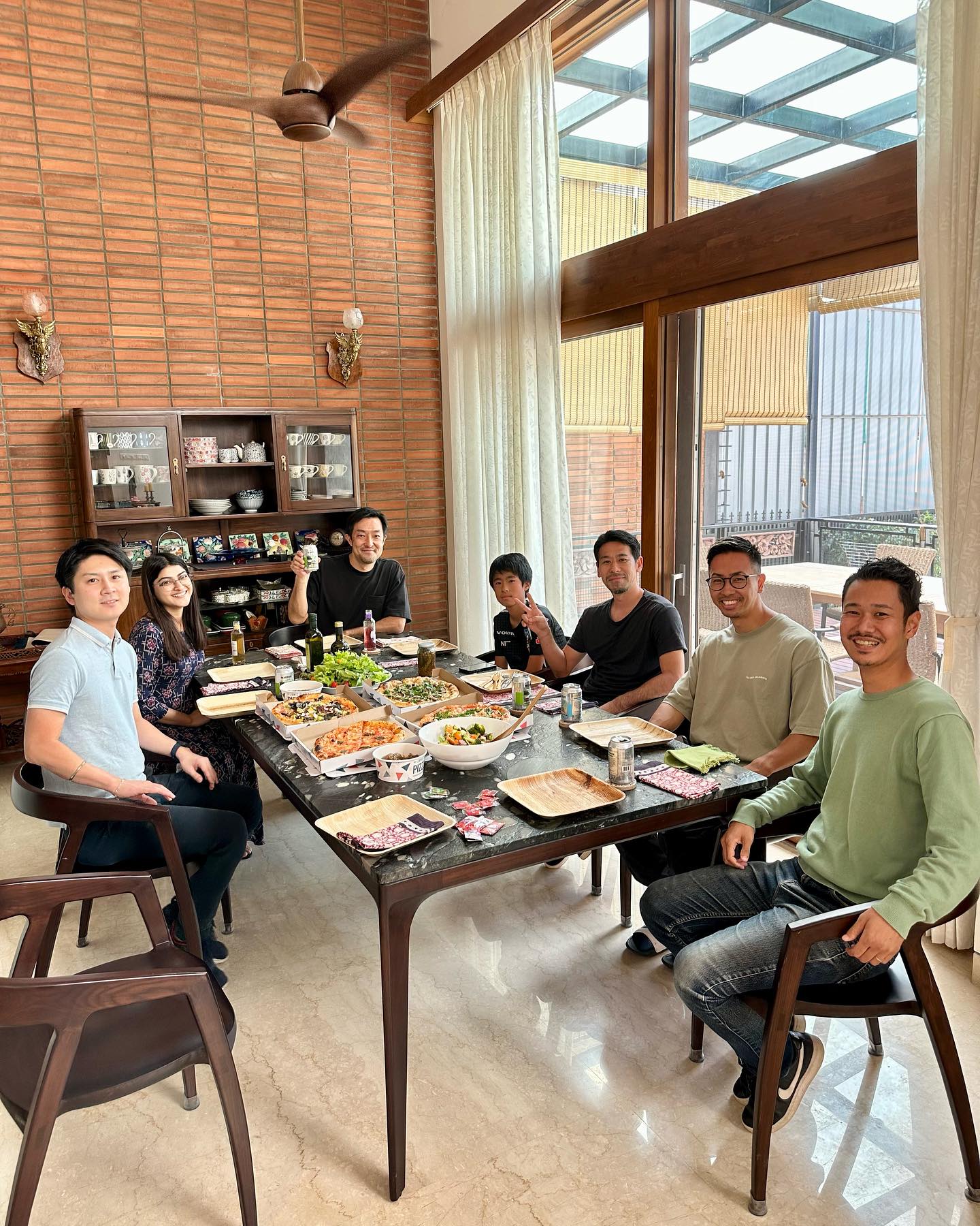みなさんそれぞれのバックグラウンドが興味深いが、次のご予定もあり話し込んでいる場合でもなかったが、これもご縁。混沌インド世界のお話ししつつのランチタイム。ドリンクやサラダなどは準備して、あとはSwiggyのデリヴァリーでそれなりに賑やかな食卓だ。