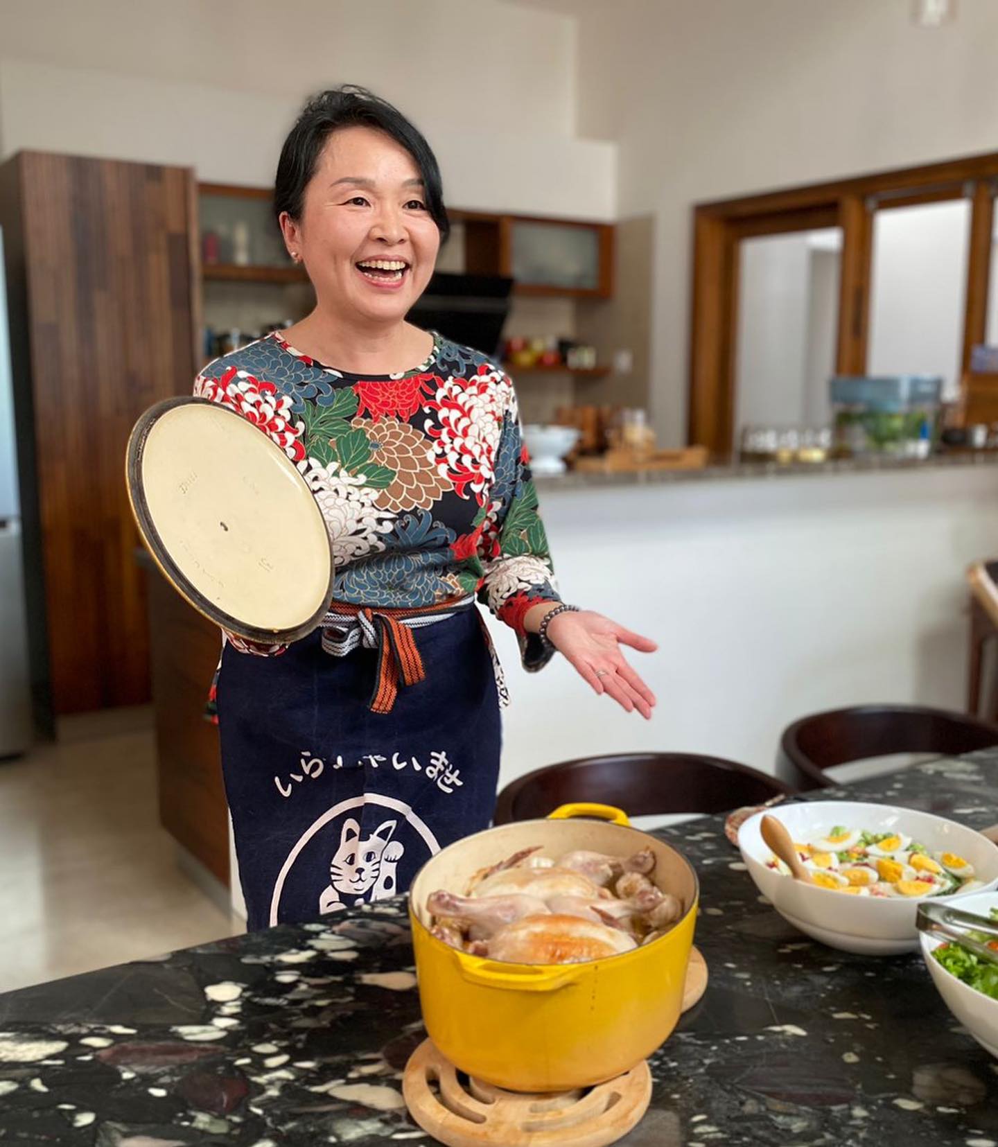 さて、前回のミューズ・クリエイション企画は家族連れによる参加者40名ほどの大規模なものであったが、今回は十数名と小人数につき、料理も、豚スペアリブ、丸鶏グリル、野菜などに絞り込む。なんとなく炊いていた日本米が大人気(インド産の日本米である谷藤米)であった。
