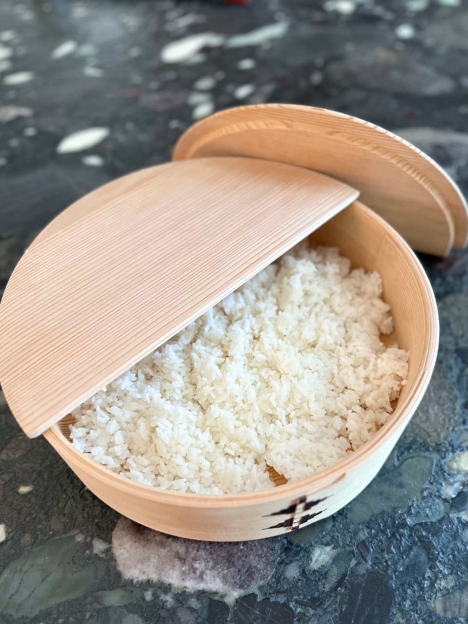 鍋で多めに炊いておいたご飯を、曲げわっぱに移しておくと、ほんのり檜のいい香りと、適度な潤い。