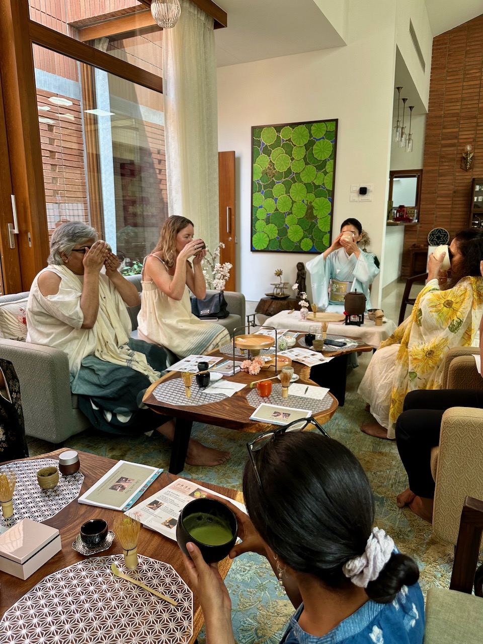 食事のあとは、和菓子を提供。その間に、わたしは日本のお茶の歴史や文化の話をする。その後、Risaさんによるお点前の披露のあと、参加者にも体験してもらった。