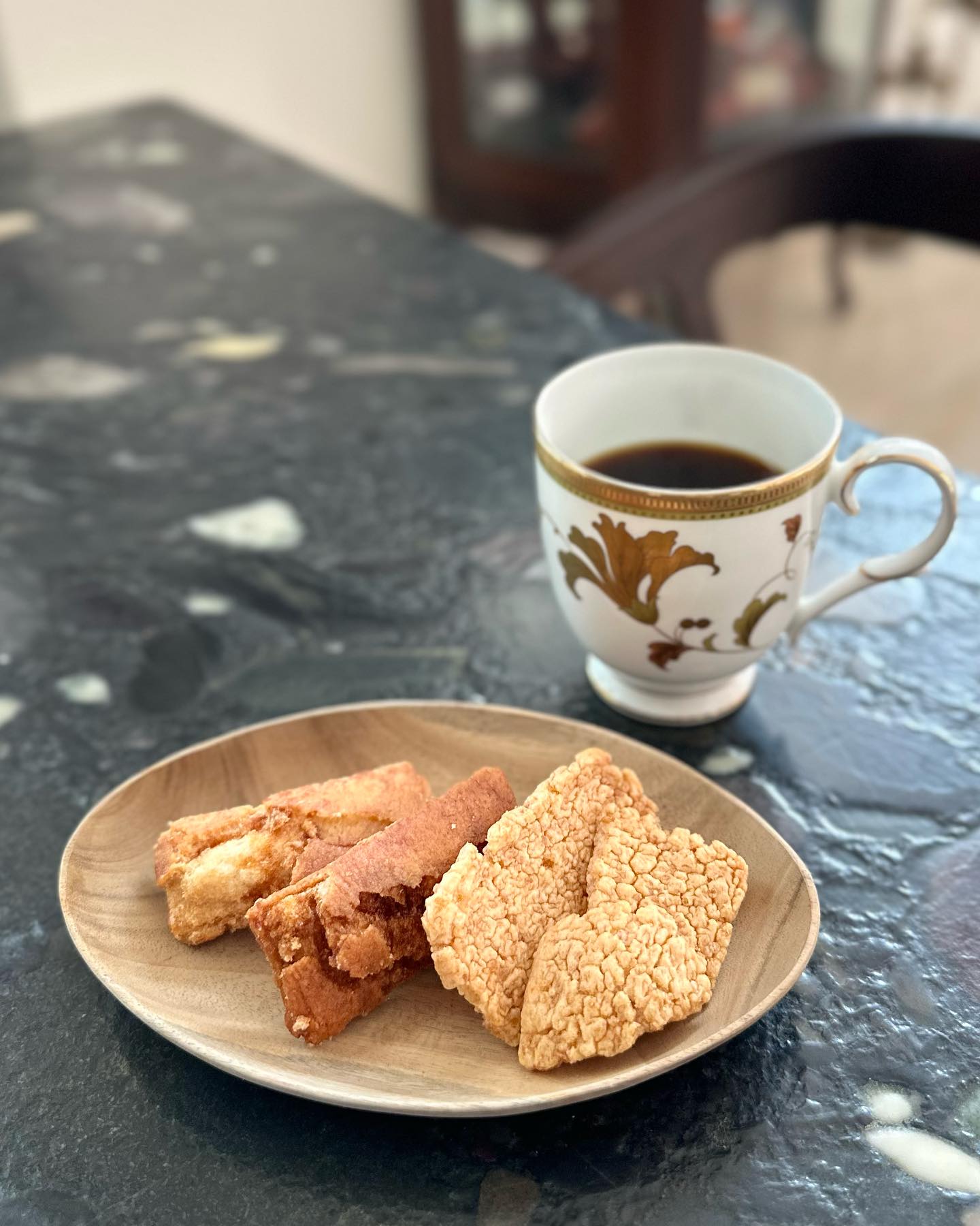 ミューズ・クリエイションの学生メンバーにいただいた日本土産。子供のころから好物のおかき系。わたしがブログか動画で言及していたことから、敢えて選んでくれたとのこと。うれしい。おいしい。とまらない。あぶない。半年前の名古屋、NORITAKEで購入したマグカップ。お気に入り。
