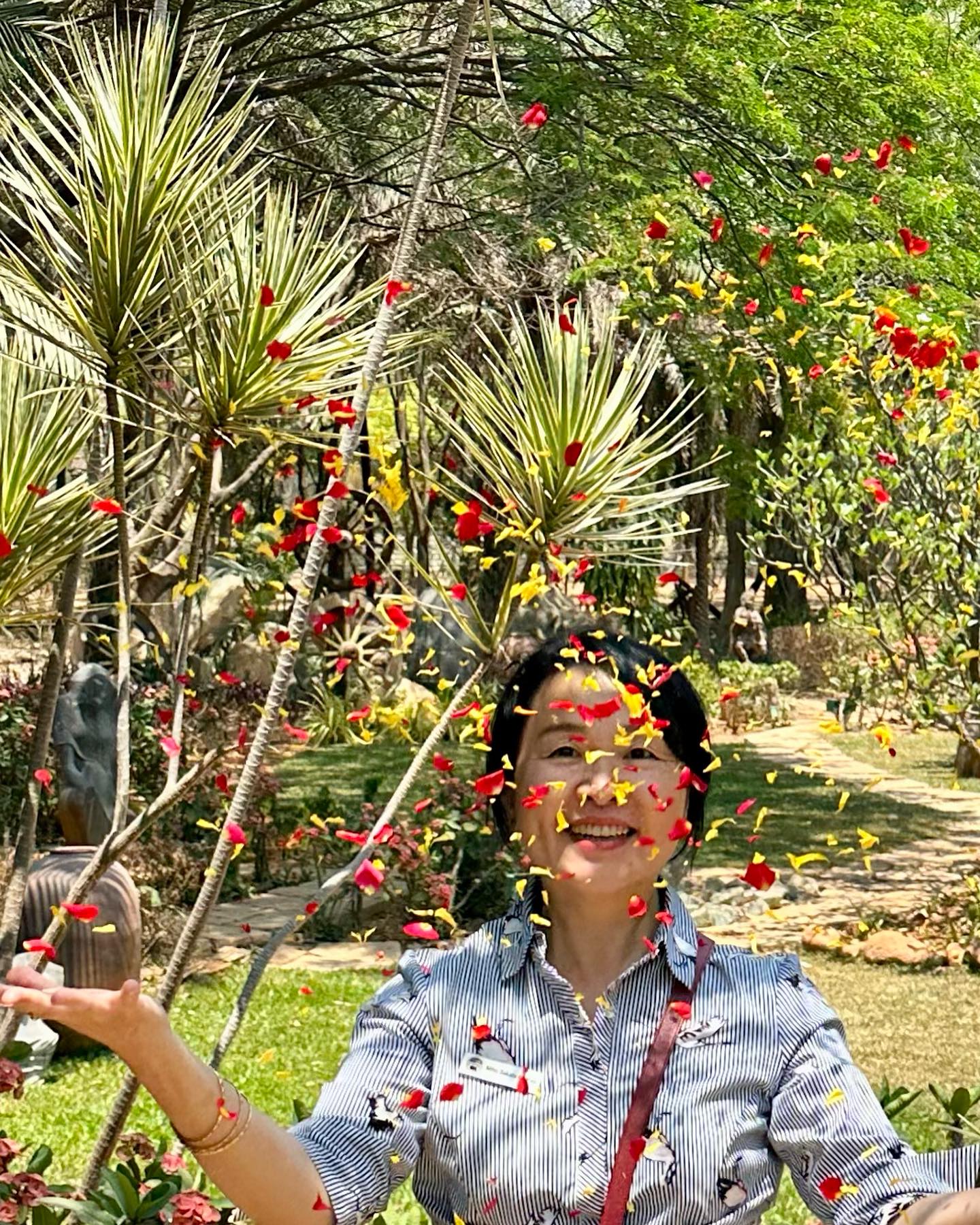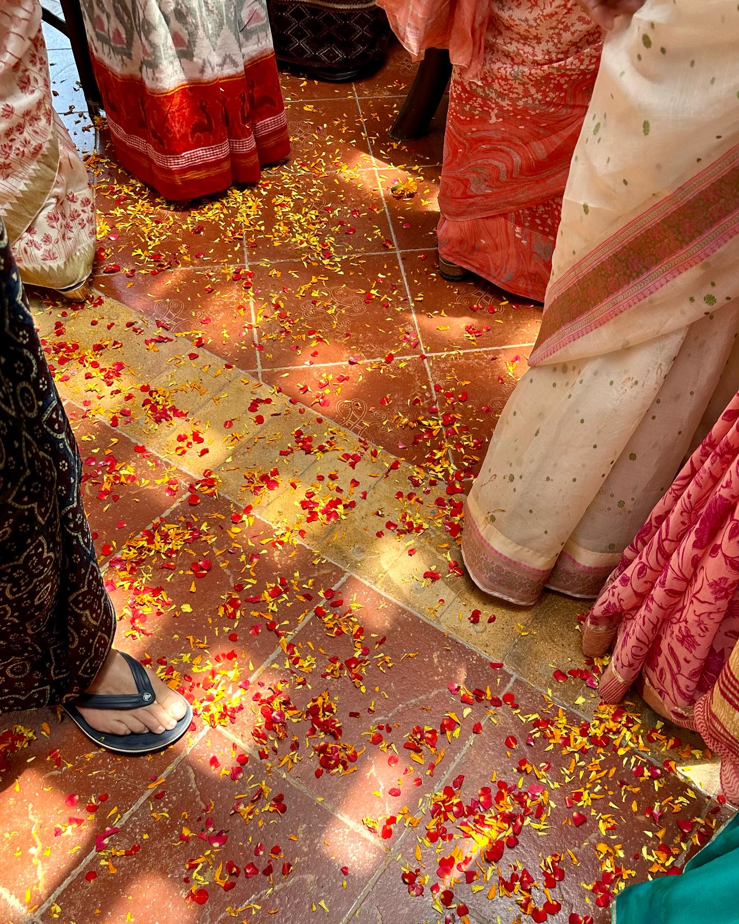 ◎今年のバンガロールは水不足につき、各方面で節水が呼びかけられている。春の訪れを祝い、色水を掛け合うホーリーも節水志向。女性の勉強会では、花びらを掛け合った。これはむしろ、美しい。
