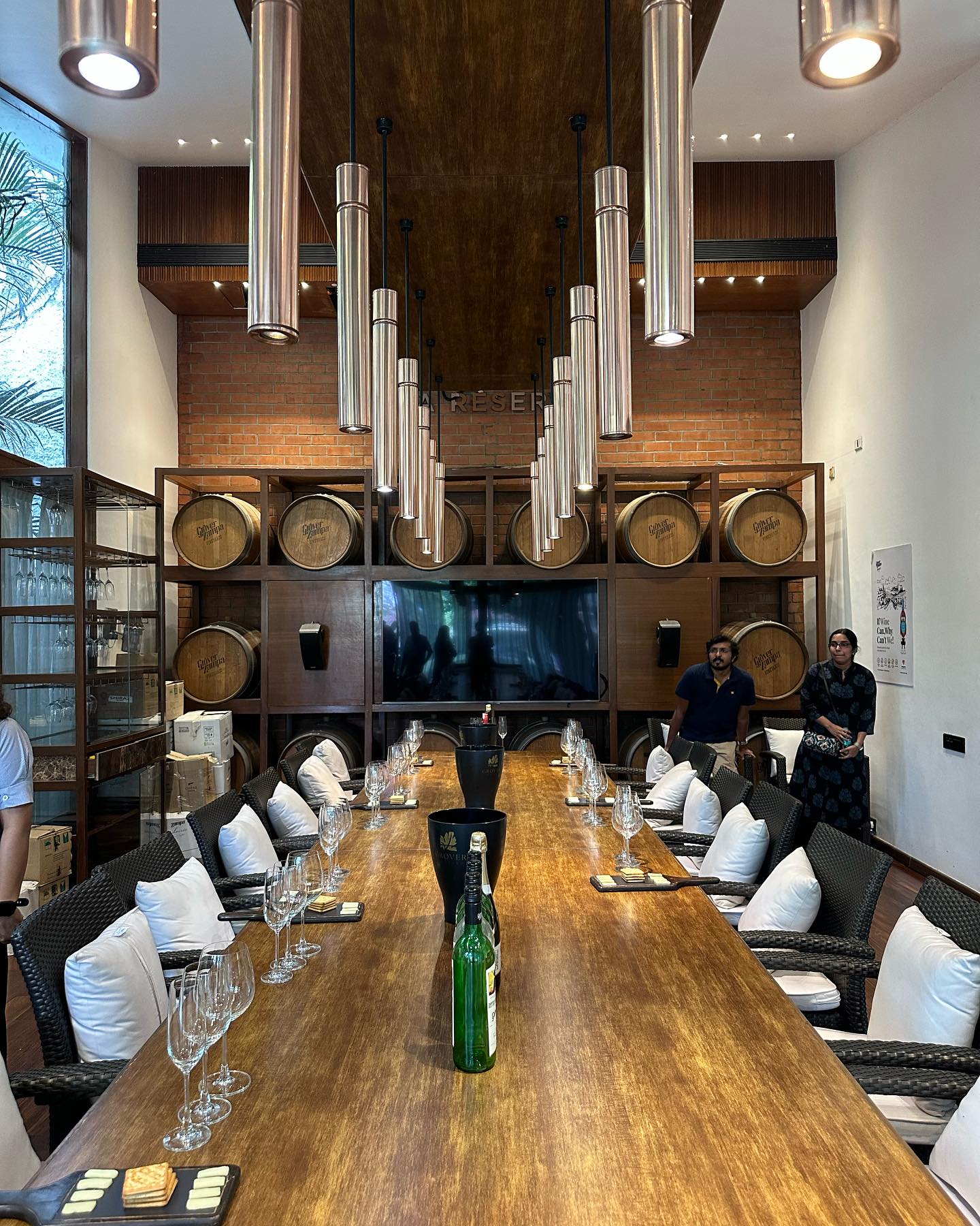 ここには、2010年に訪れて以来、14年ぶりだ。結構な歳月が流れただけあり、テイスティング・ルームが整い、ランチを出すレストランも開業するなど、雰囲気はよくなっていた。1日3回(90分)実施されているガイドツアー(約750ルピー)。わたしたちは、午後2時開始の部に参加した。ワイナリーの歴史にはじまり、スパークリング、白、ロゼ、赤……と各ワインの製法、ワイン樽の役割(発酵や熟成)などについて学ぶ。